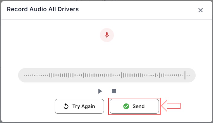 Once the message is recorded, click on the Send button. Or click Try Again to re-record.