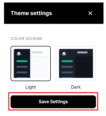On the Theme settings form, select the desired theme and click on the Save Settings button.
