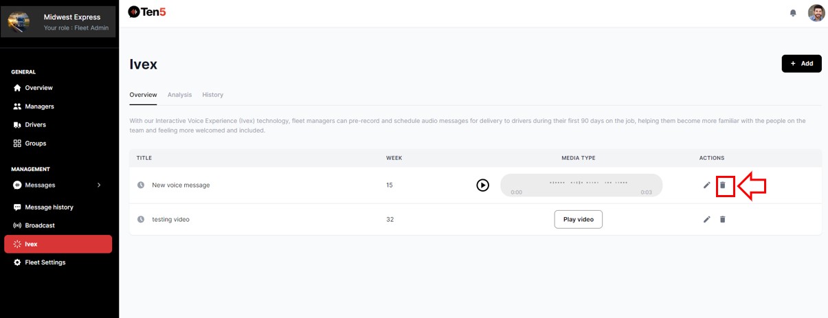 In the relevant Ivex recording, click the Remove icon to delete the Ivex.