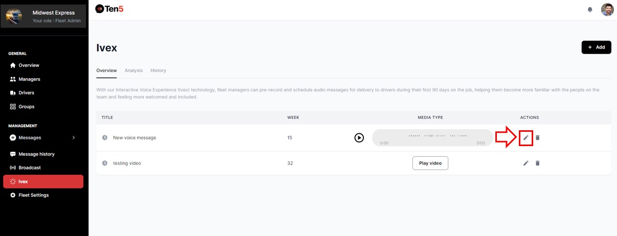 Log in as fleet admin user and on the left side choose the Ivex option.