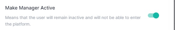 In addition, with the "Make Manager Active" option, you can give or remove access to the platform
