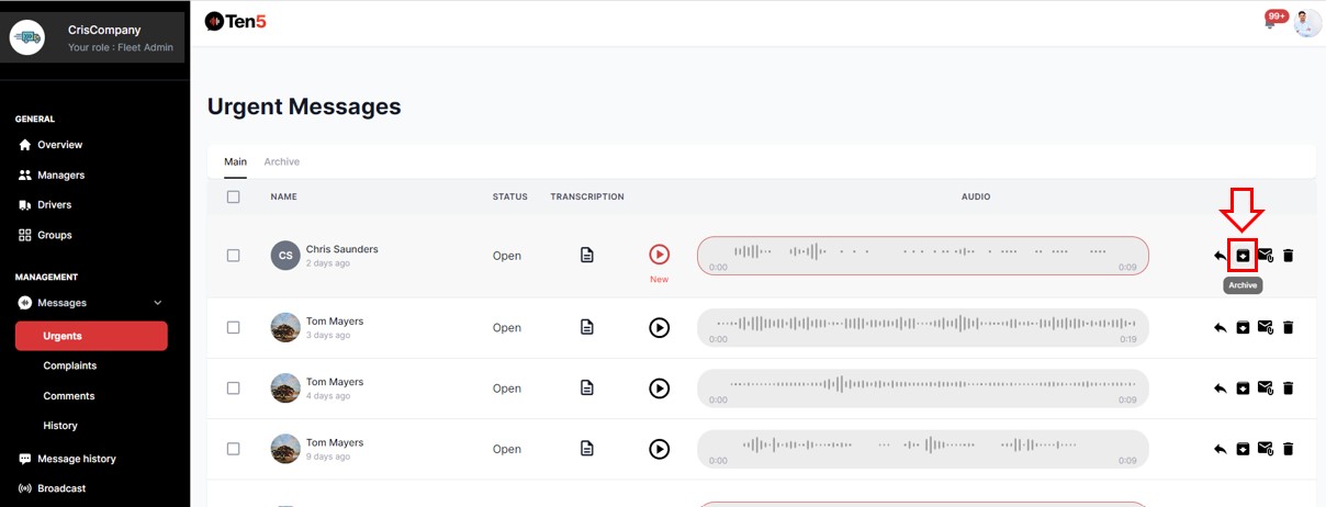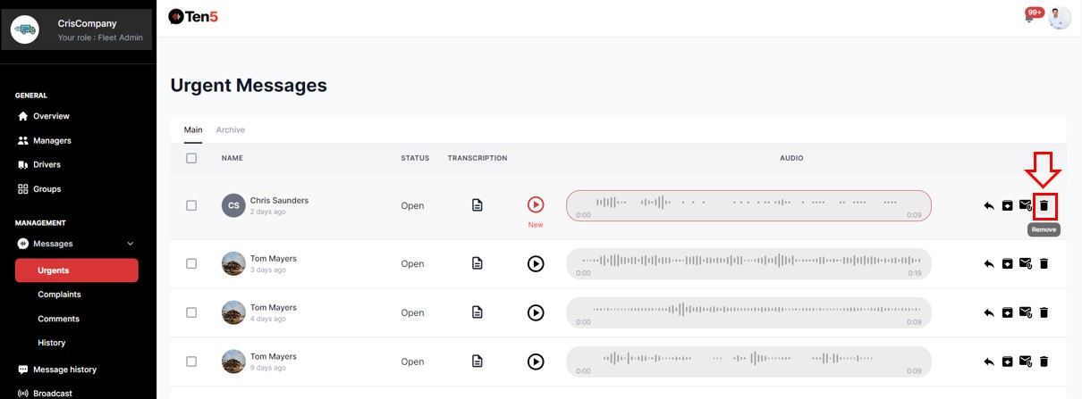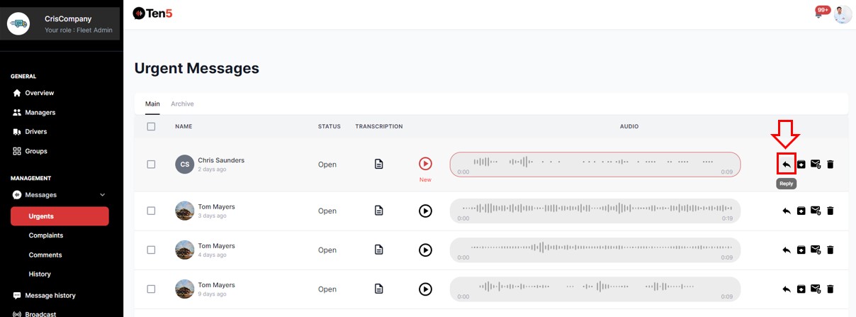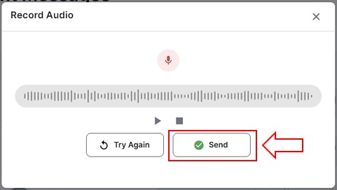 If you are satisfied with your message, click Send to send your reply to the driver. If you are not happy with your initial recording, click Try Again and repeat the process.