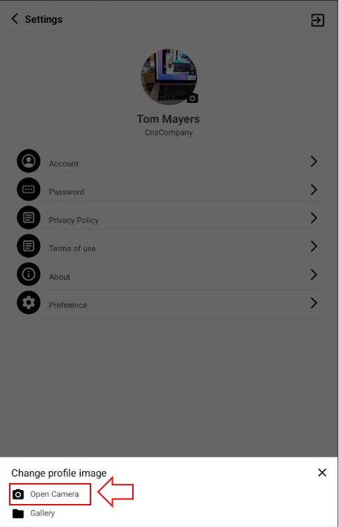 To change the image by taking a picture with the camera, select the Open Camera option.