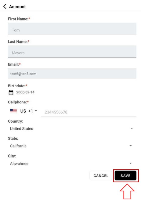 You can change your information, except by mail. Once the information is updated, click the SAVE button.