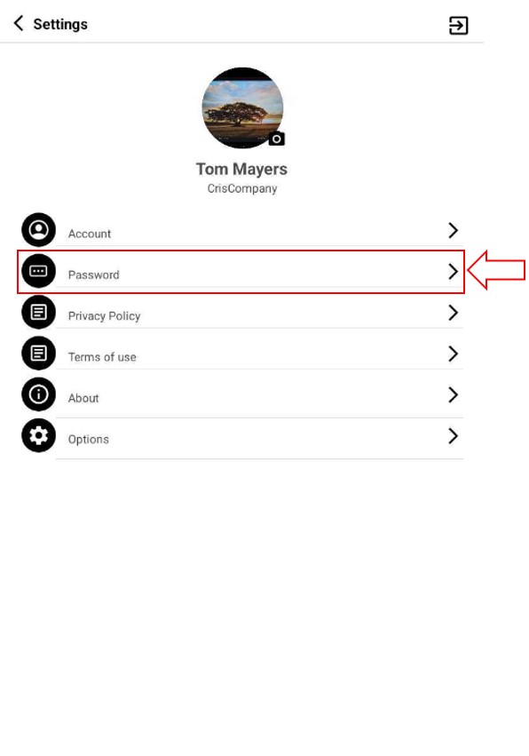 After, in the settings view select the Password option. Clicking on the arrow or the name.