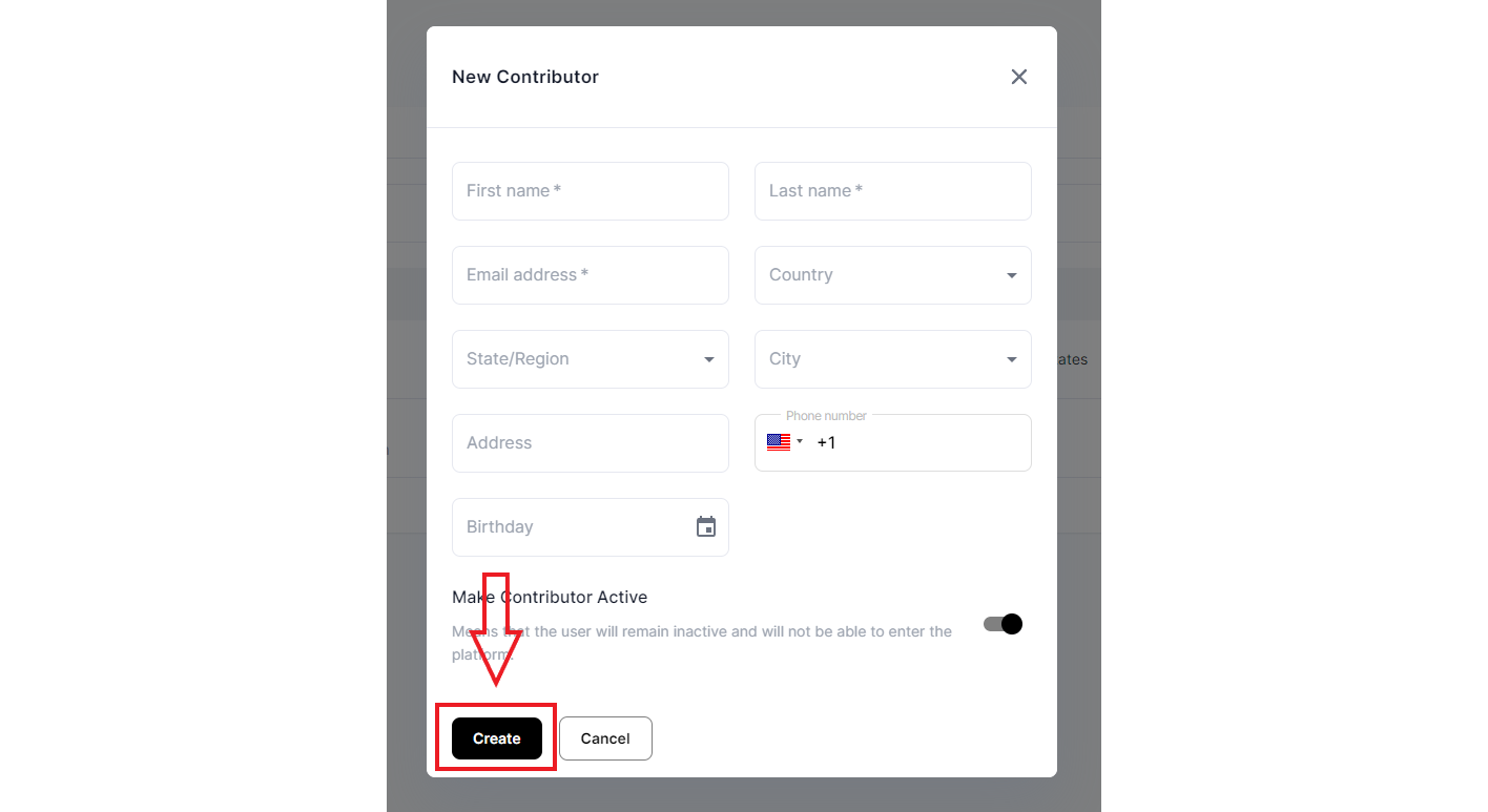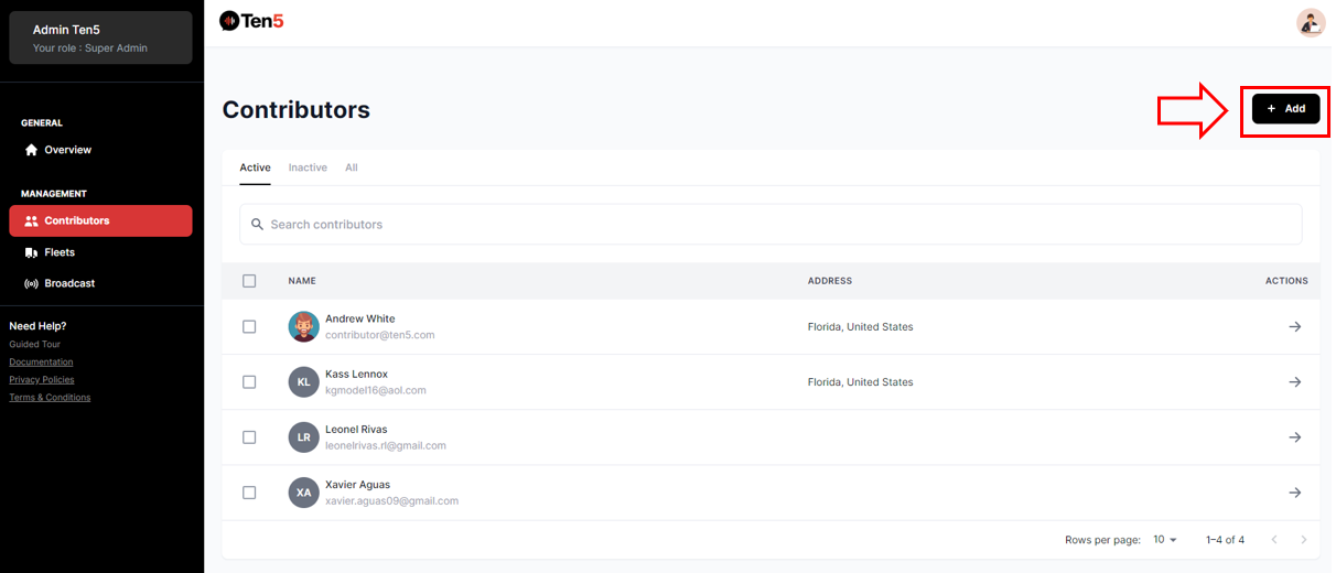 Log in as super administrator user, and on the left side choose the Contributors option. And click on the Add button.